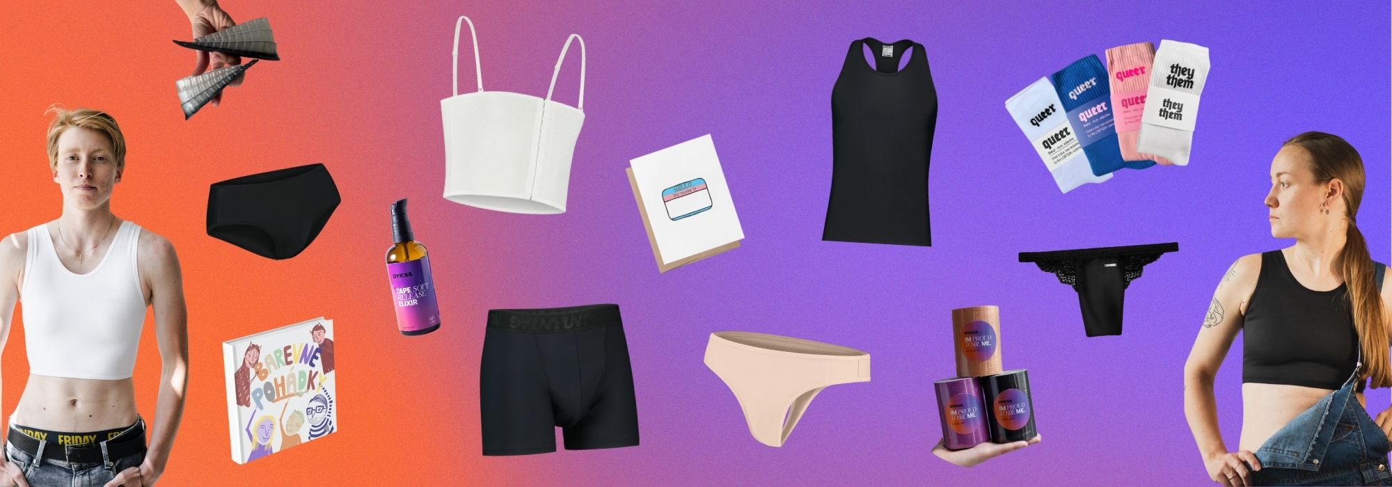Otázky „jsem normální?“ tady neřešíme – prostě jste. Tečka. Naše produkty vám pomůžou cítit se v těle líp, ať už potřebujete binder, tucking gear nebo jen něco pro radost, co vám sedne.