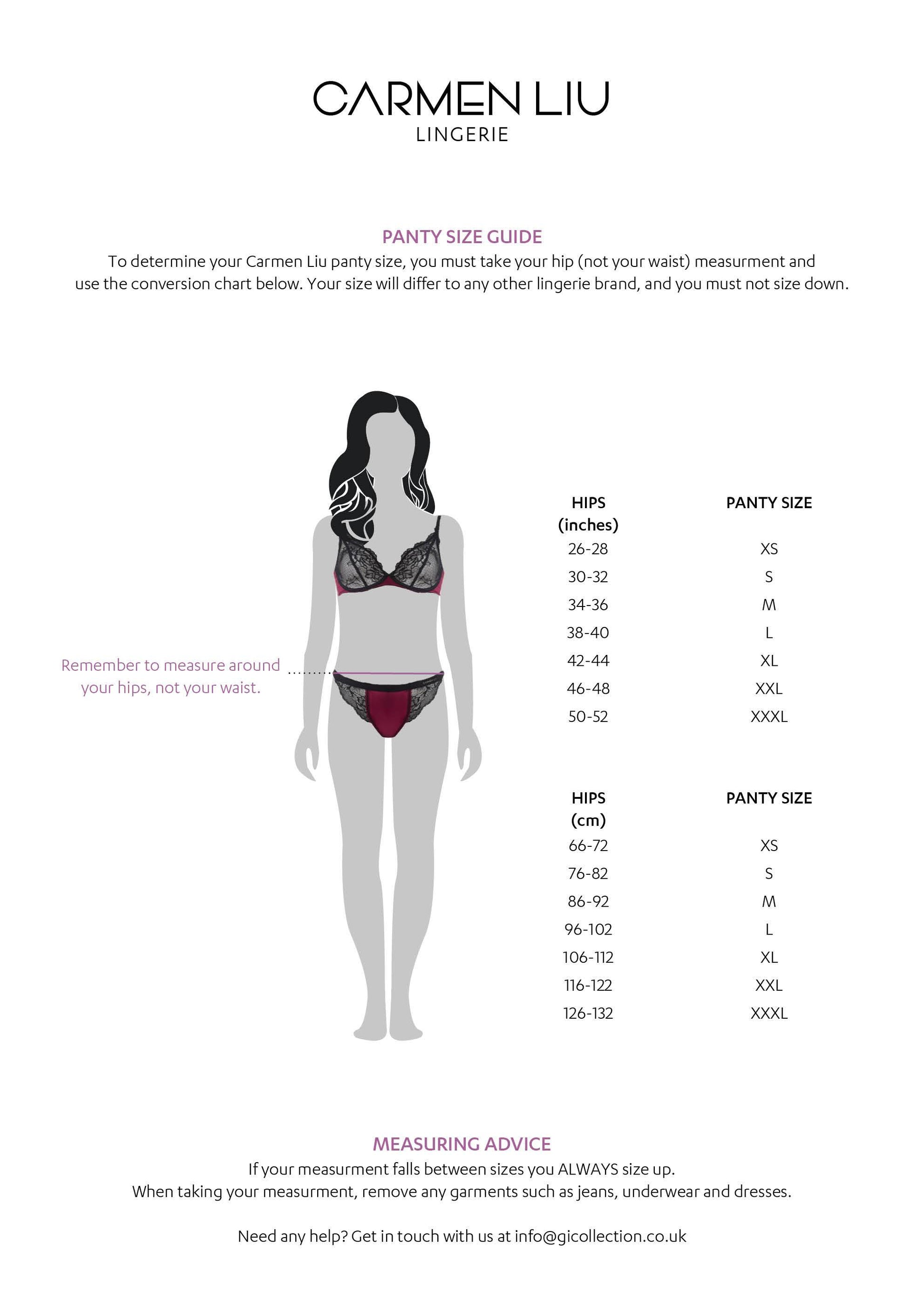Doporučujeme pořádně se přeměřit, aby vám kalhotky krásně sedly. Pokud vybíráte mezi dvěma velikostmi, určitě berte tu větší. Tabulku velikostí najdete tady.