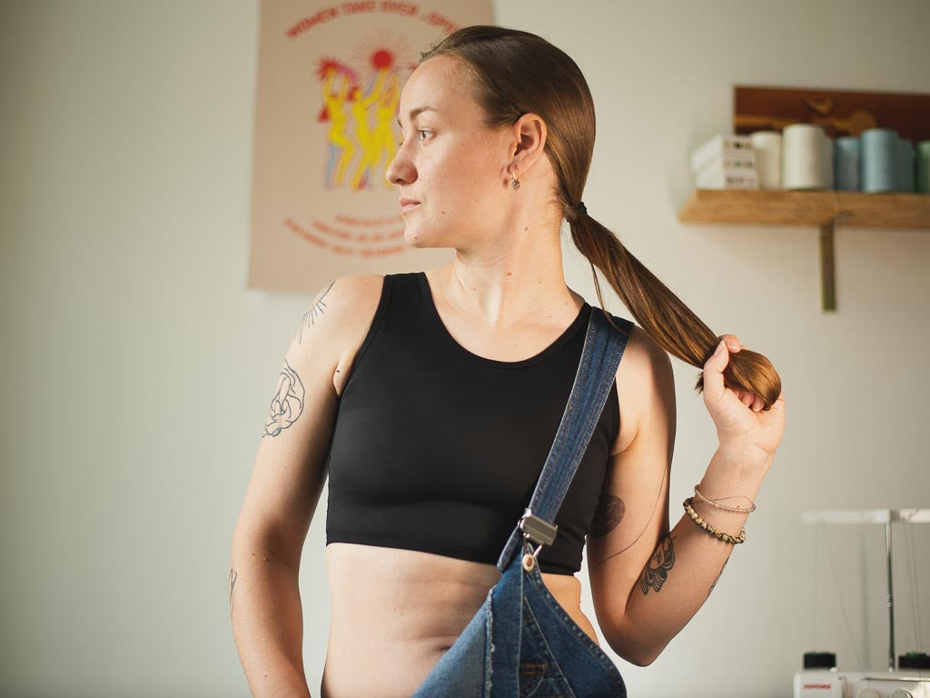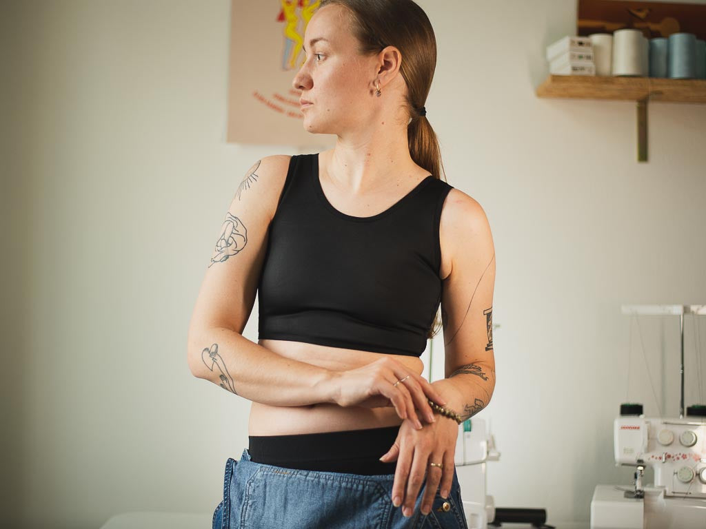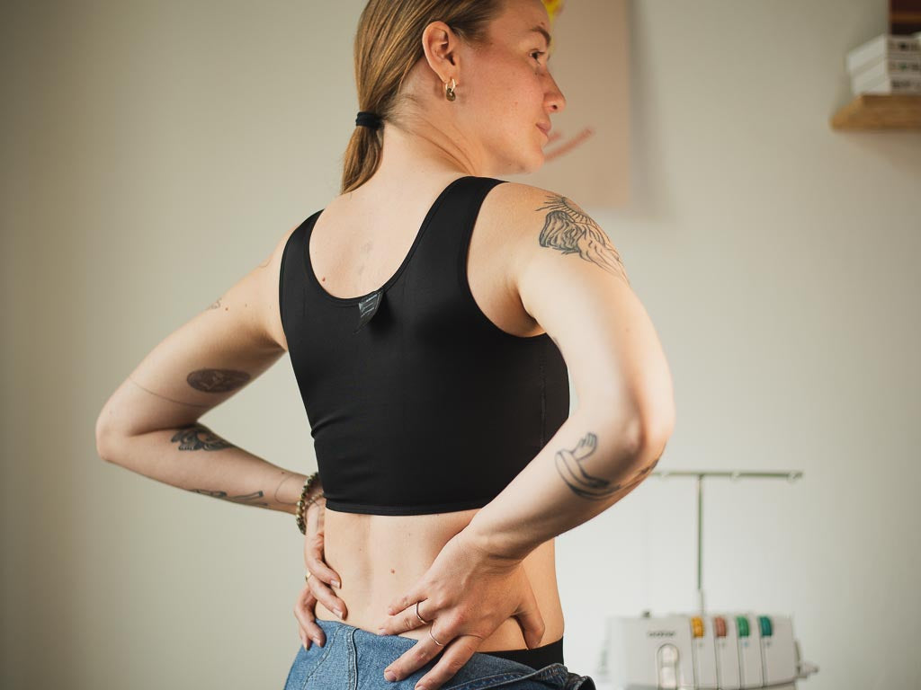 Představujeme vám druhou generaci krátkého chest binderu z naší vlastní kolekce. Je vyroben z pevnějšího materiálu, který je ale mimořádně měkký a pohodlný. Zároveň je ale více kompresní. Takže! Plochý hrudník a hluboký nádech už se nemusí vylučovat. Jasná volba pokud hledáte extra pevný a zároveň pohodlný binder. Je vhodný na každodenní nošení a můžete s ním i do slané vody. Průramky jsou střižené tak, aby nikde nic nevylézalo a vše bylo pěkně schované. Hlubší výstřih se schová i ve výstřihu do V.